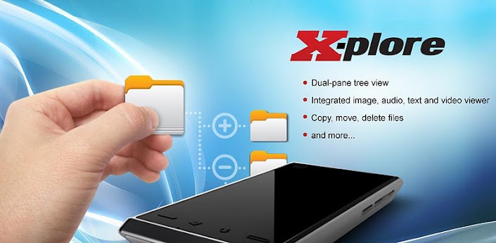 X-plore adalah dual-panel file explorer dengan tampilan struktur pohon, LAN dan akses root.